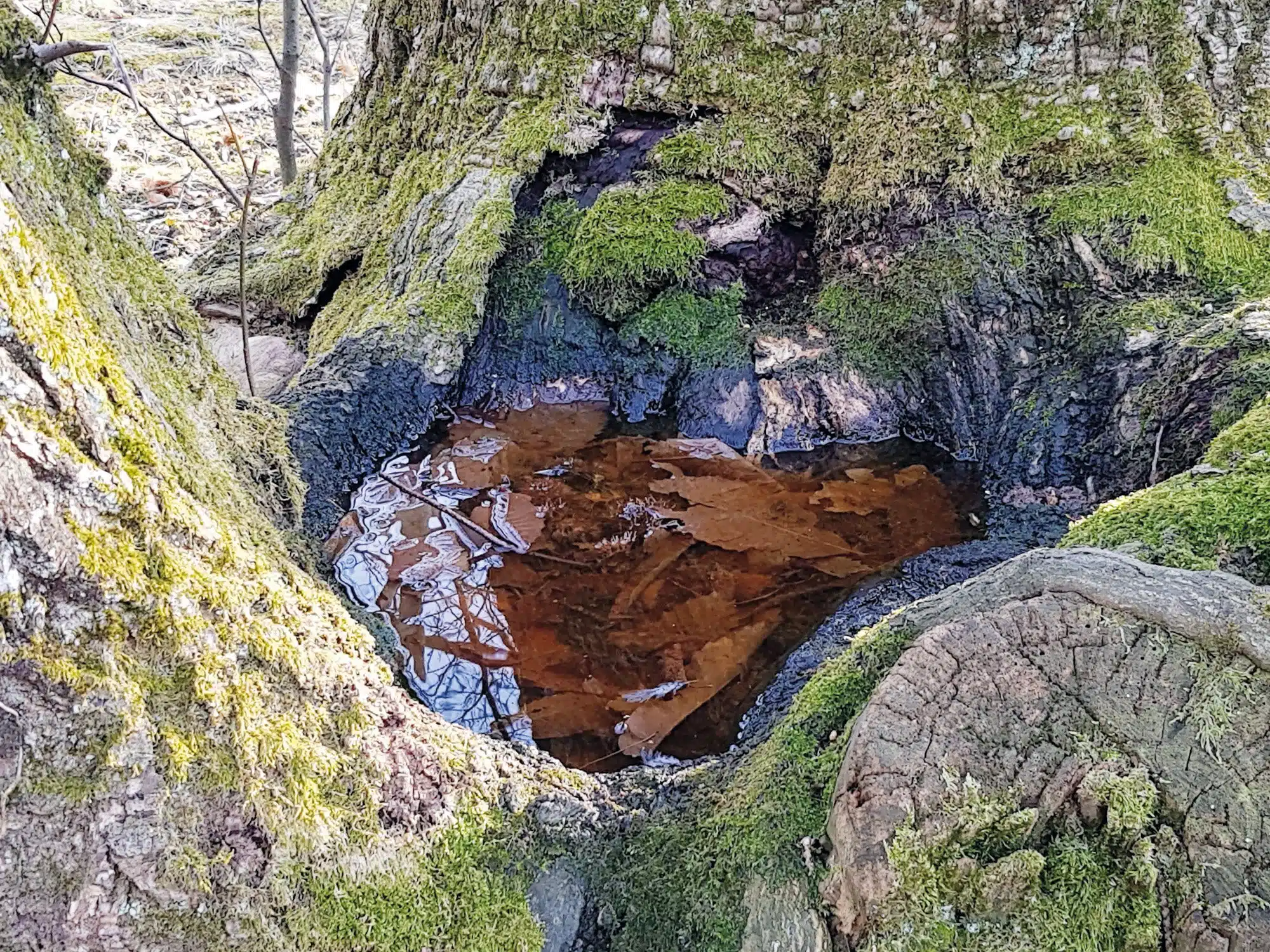 - Vertiefungen und Stammfusshöhlen: nicht durch Insekten geschaffene Höhlungen oder Mulden im Holzkörper, feucht oder trocken, ohne Mulm