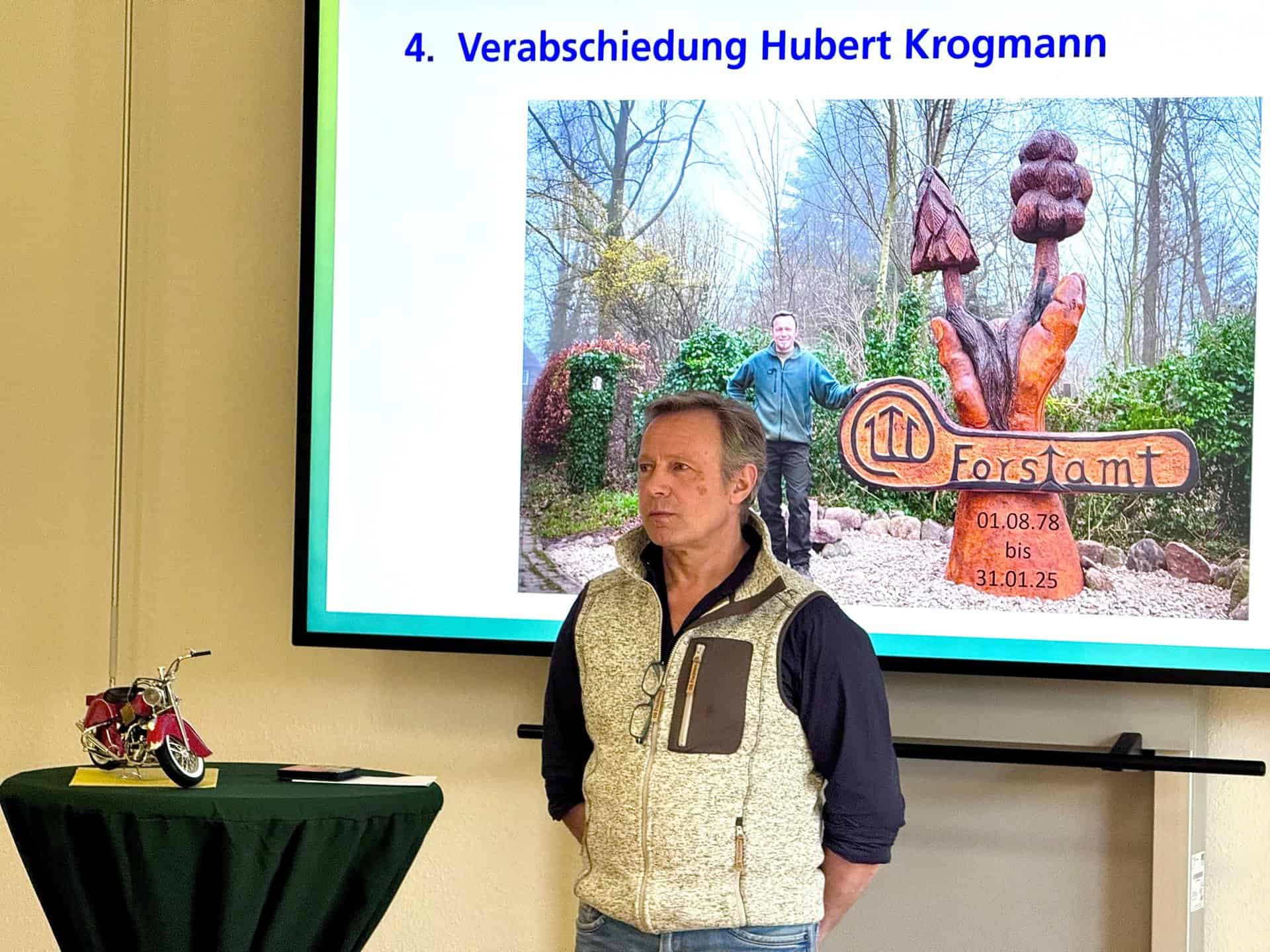 „Mit Hubert Krogmann verlässt uns ein erfahrener, engagierter und kreativer Kollege. Wir wünschen ihm alles Gute und vor allem stets Gesundheit“, dankt Forstamtsleiter Stefan Grußdorf in Namen des gesamten Forstamtsteams.