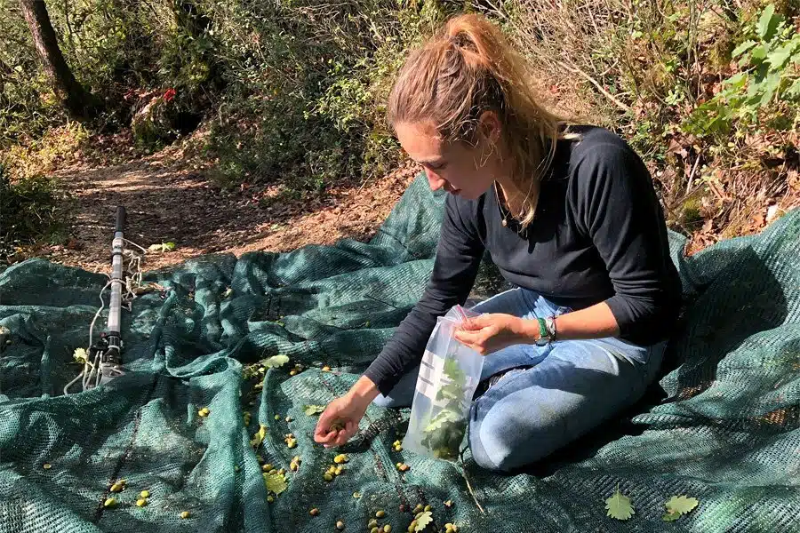 Darüber hinaus haben wir untersucht, wie stark Mutterbäume, die Halbgeschwister sind, die genetische Vielfalt des Saatguts beeinflussen. Von den 14 Bäumen aus Bülach, von denen wir Eicheln gesammelt hatten, wählten wir jene 12 Bäume mit der höchsten Anzahl Eicheln für die Analyse aus. Bei diesen Bäumen gab es keine Vollgeschwister, jedoch einige Halbgeschwister. Die genetische Vielfalt von Eicheln von zwei Halbgeschwistern war signifikant tiefer als die von Eicheln von nicht näher verwandten Bäumen, allerdings betrug dieser Unterschied nur etwa 10%.
