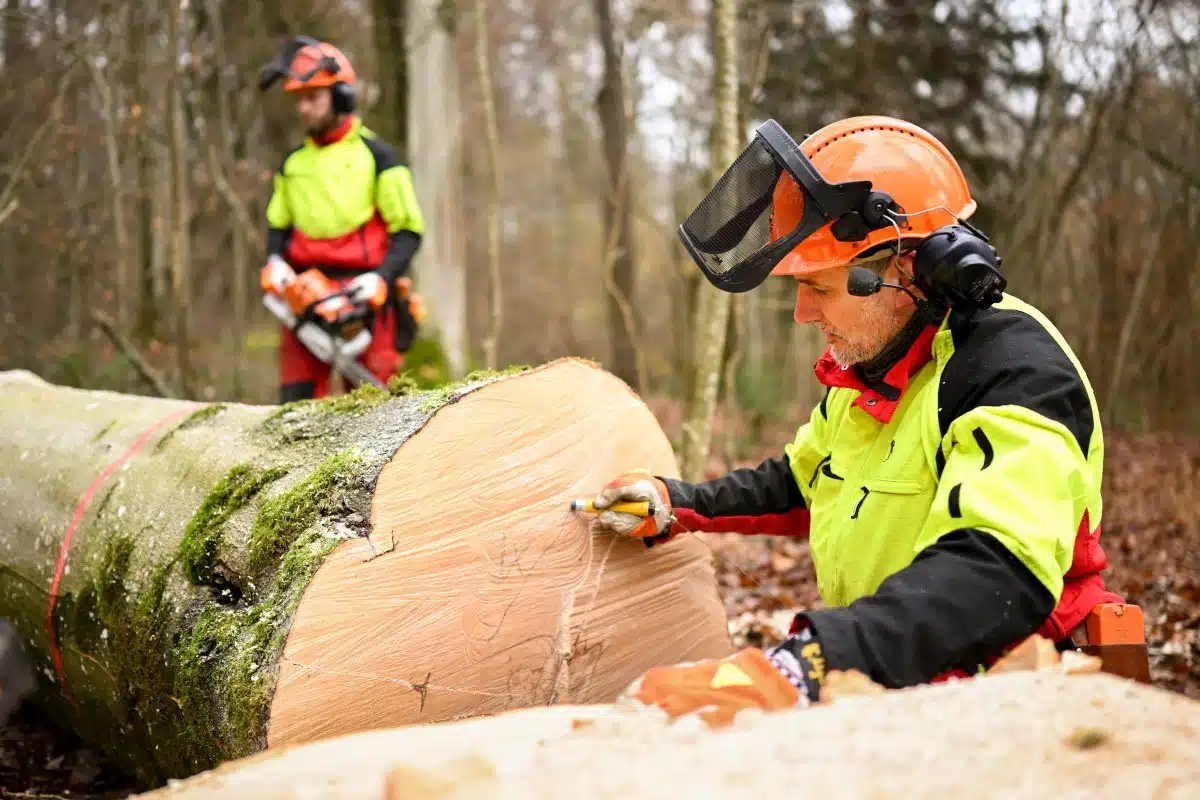 Im Schnitt arbeiteten die befragten Waldbesitzenden im Erhebungsjahr rund 29 Stunden je Hektar in ihrem Wald. Zehn Stunden davon entfielen auf die Holzernte und -bringung, zehn Stunden auf sonstige Forstbetriebsarbeiten und der Rest auf den Holztransport und die Energieholzbereitstellung. Die Arbeiten wurden im Mittel mit 1,2 Arbeitskräften überwiegend in Eigenregie zusammen mit unentgeltlichen Arbeitskräften, meist Familienangehörigen und nahen Verwandten, durchgeführt. 27 Teilnehmer ließen die Waldarbeit zumindest teilweise durch ein Forstunternehmen erledigen. Dabei handelte es sich häufig um Pflanz- und Zaunbauarbeiten und die Hackschnitzelproduktion. Aber auch größere Hiebsmaßnahmen wurden von Waldbesitzern überwiegend extern vergeben. Der Unternehmereinsatz ist einfach schneller als die Eigentätigkeit, da maschinell von professionellen Forstunternehmen eine viel höhere Festmeterleistung je Stunde erreicht wird. Nicht nur rein betriebswirtschaftlich gesehen ist diese Entscheidung absolut sinnvoll. Insbesondere bei kalamitätsbedingten Zwangseinschlägen wie Sturmwürfen ist von der motormanuellen Aufarbeitung in Eigenregie aus Gründen der Arbeitssicherheit ohnehin zumeist abzuraten. Darüber hinaus ist ein zügiger Arbeitsfortschritt hinsichtlich der Waldschutzsituation sehr vorteilhaft.